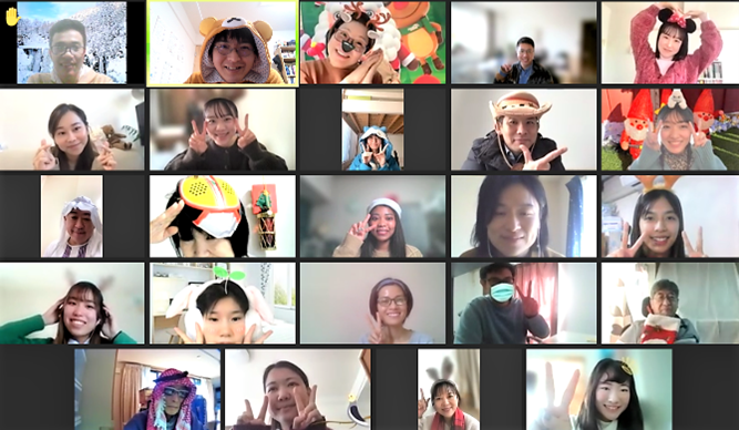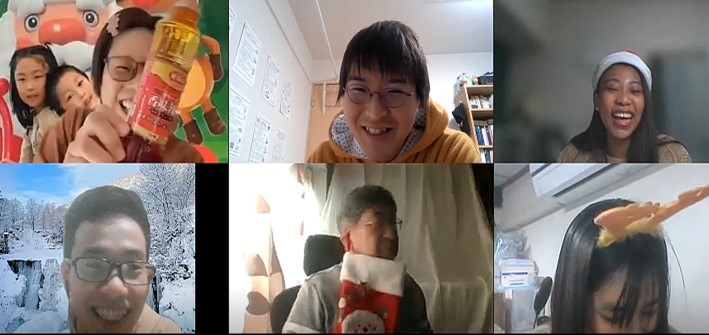 | 感想 | アンケートでは ・日本人と一緒にYear End Partyに参加するのは今回初めてです。 新しい経験をもらいました。とても楽しかったです。 ・クイズやおしゃべりを通して外国や日本の方とお友達になれた。 ・Zoomで横浜に旅行に行けたのですごい楽しかった。 ・The games were really fun and all of my group members were friendly and helpful. I had a really good time today. などの喜びの声がありました。 今回、パーティーを楽しみながら、いろいろな人と知り合って、友達になりました♪2022年はぜひ対面でパーティーをしたいですね♪楽しみにしてください!! |