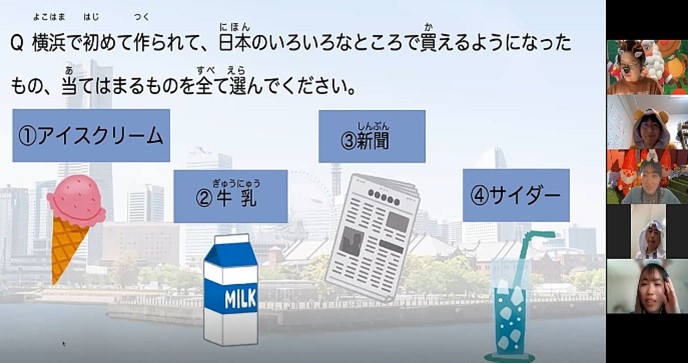 | 内容 | 日本人と外国ルーツの人が25人集まって、「物しりとり」をしたり、オンラインで横浜を旅行したりしました!!また、今年の一番の思い出やいろいろな国の文化について話し合いました♪ |