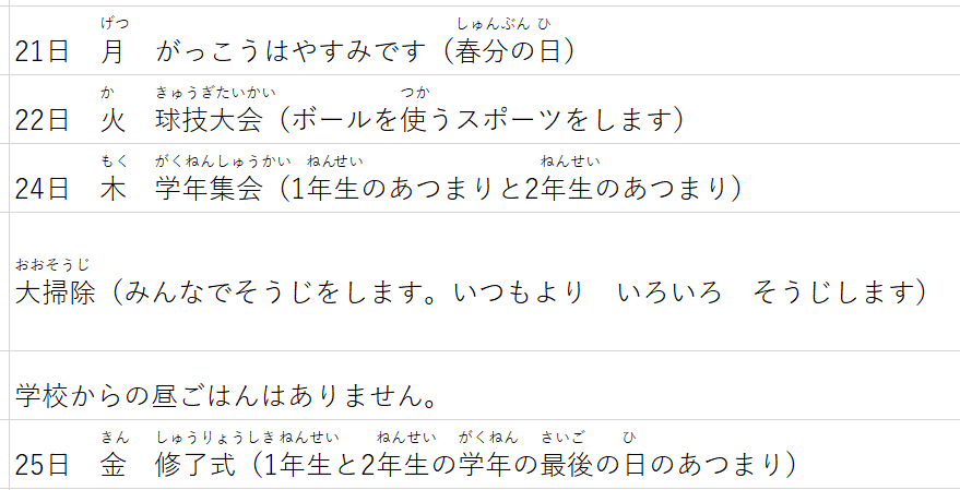 学校で使われる文をかんたんな日本語に変えました。