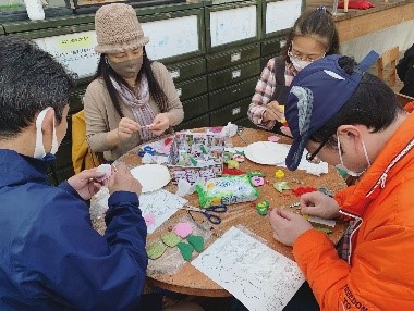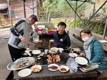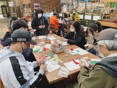 | 感想 | ※アンケートより抜粋 秋の十月、晴れて、青い空と白い雲、私たちは山道を行きながら、八王子の「夕やけ小やけふれあいの里」に着きました。山は赤、緑、黄で、私たちの気持ちもきれいな自然のように多彩でした。 バーベキュー、豚汁、ご飯の準備をみんなで分担しました。火を起こして、食材を洗って、食器を探して、料理を皿に盛って、みんなで食べました。そして、すてきなつるし飾りを作ったり、子供が丘を走ったりして、すべての音、声、景色がとてもきれいでした!! 世界のいろいろなところから集まった人々に、感謝します。 |