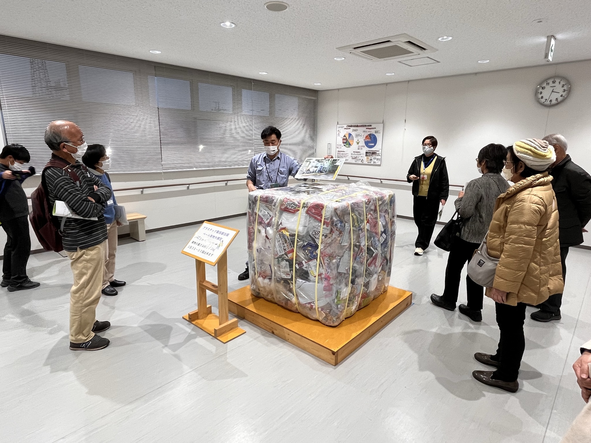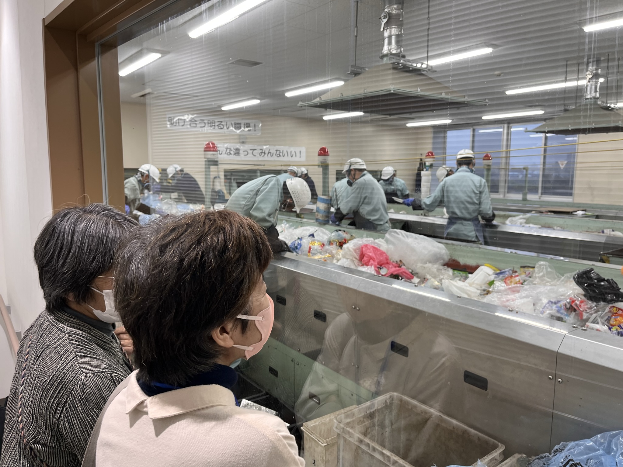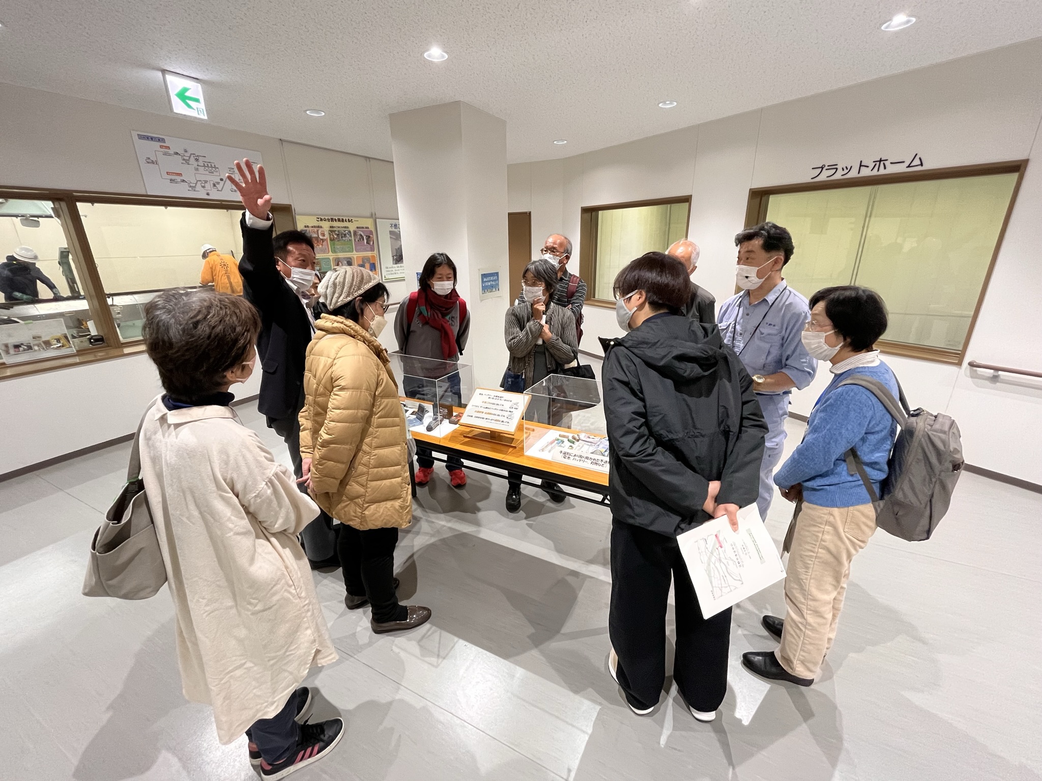 | 内容 | 日野市のごみが集まり、処理をしている施設「日野市クリーンセンター」を訪問しました。 今回は「プラスチック類資源化施設」を見学しました。私たちが出したごみがどのように処理され、資源化されるのか、施設をめぐりながら職員さんの丁寧な説明を聞きました。プラスチック類を多くの作業員の方が手選別している部屋については、皆さん特に関心を持って見ていました。 施設見学後は、会議室で「ごみの出し方・分別ミニ講座」を行いました。どの種類のごみ袋で出せばよいか迷うごみについて、皆さんから沢山の質問が出ていました。 最後に「ごみゼロ推進課」の職員さんから「ごみ・資源物の分け方と出し方」について6つの言語(英語・中国語・ベトナム語・スペイン語・韓国語・フランス語)で書かれたパンフレットの説明をいただき、見学ツアー終了となりました。 ※パンフレットはHIFAの事務局に持ち帰りましたので、欲しい人は取りに来てください。 |