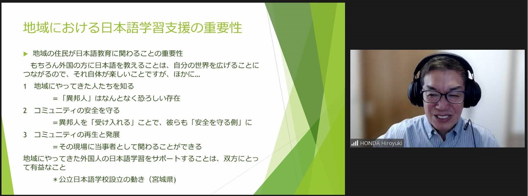第4回は「外国にルーツを持つ子どもたちに対する日本語支援について―NPO法人みんなのおうちの活動実践から―」(講師:NPO法人みんなのおうち代表理事 小林普子氏)、第5回は「外国にルーツを持つ子どもの保護者に対する日本語教育の意義と地域社会への影響」(講師:北陸先端科学技術大学院大学教授 本田弘之氏)をテーマとして実施。