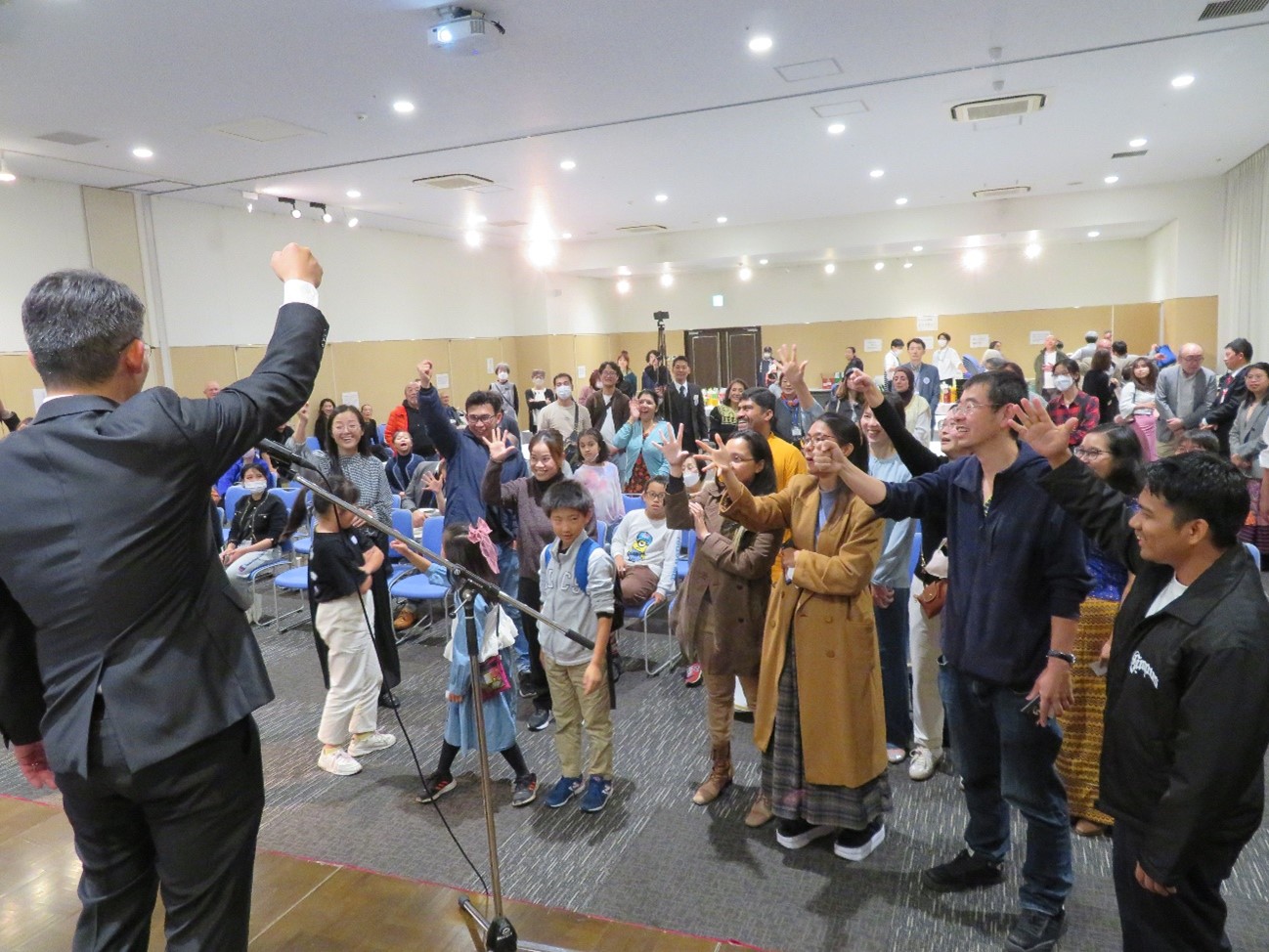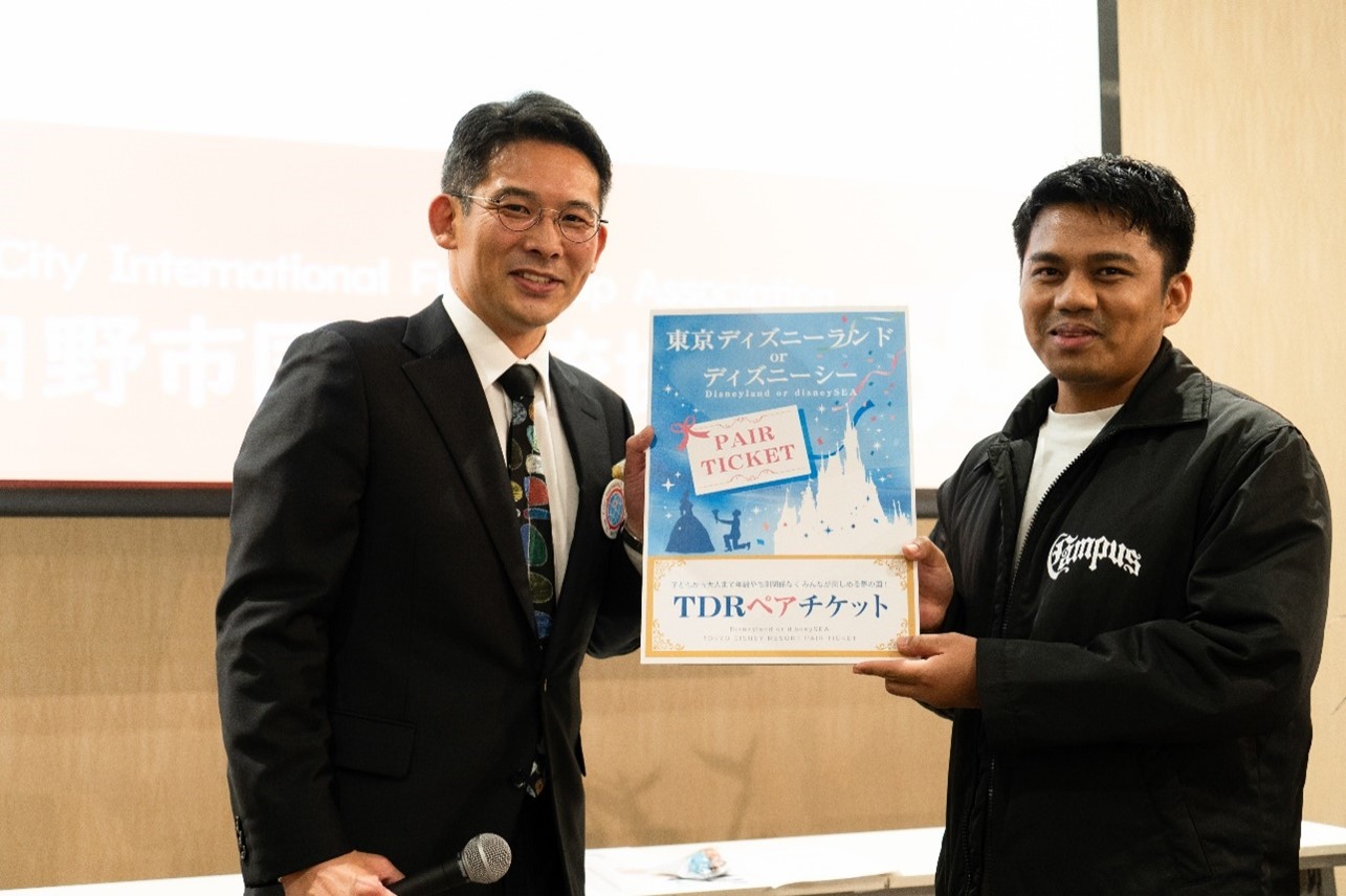 お祝いの会で、みんなの笑顔を集めたビデオを観ました。外国ルーツの人たちがHIFA2025宣言をしました。 お楽しみ会では、日野高校女子ダンス部のダンスとSIOさんのコンサートがありました。そのあとで、会員だけの「おたのしみ抽選会」をやりました。景品が当たった人は喜んでいました。最後にディズニーリゾートチケットが当たる「じゃんけん大会」で盛り上がりました。 おいしい料理を食べて、みんなでたのしく過ごしてお祝いできました。 |