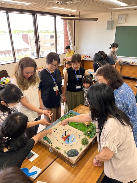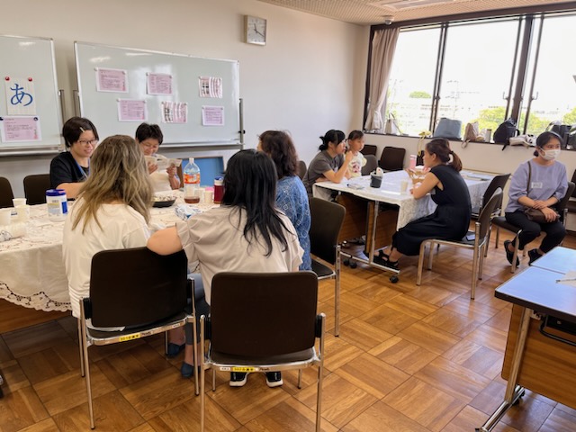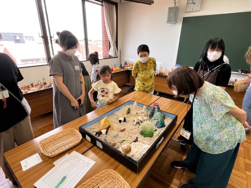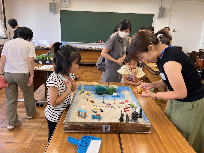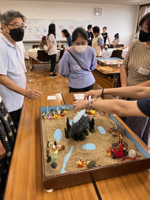 | 内容 | 『箱庭カフェ』をカウンセリングスペース「まてりあ」さんのご協力のもと、開催しました。箱の中の砂を動かし、好きなものや何となく手に取ったものを自分が置きたいように置くことにより、自分の心と向き合う体験をしました。意識的、無意識的に置いたものにそれぞれ意味を感じ、少し自分の心がわかるような気持ちになった人も多かったようです。このような活動を通じて、これからも生活自立支援部「こころ応援プロジェクト」は外国ルーツの方の心の健康を応援していきます。 |