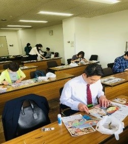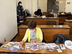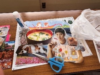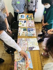 内容 参加者が気になった写真やイラストを選び、切り取り、台紙に貼り付け、その後体験したこと、感じたことを話し合いました。 感想 ⓵気の向くまま、自由な気持ちなって体験することができました。 ⓶お子さんが1時間以上集中していられたことは初めてだと保護者は感心していました。 ⓷体験後みんなで各自の「コラージュ」について話し合ったのは良かったです。 ⓸忙しい日々に追われ、思い通りに身動きが取れなくなることがたまにあります。このような企画が自分と向き合うきっかけになって、今後も少しつつ心の疲れをほぐしていけたらいいと思いました。 |